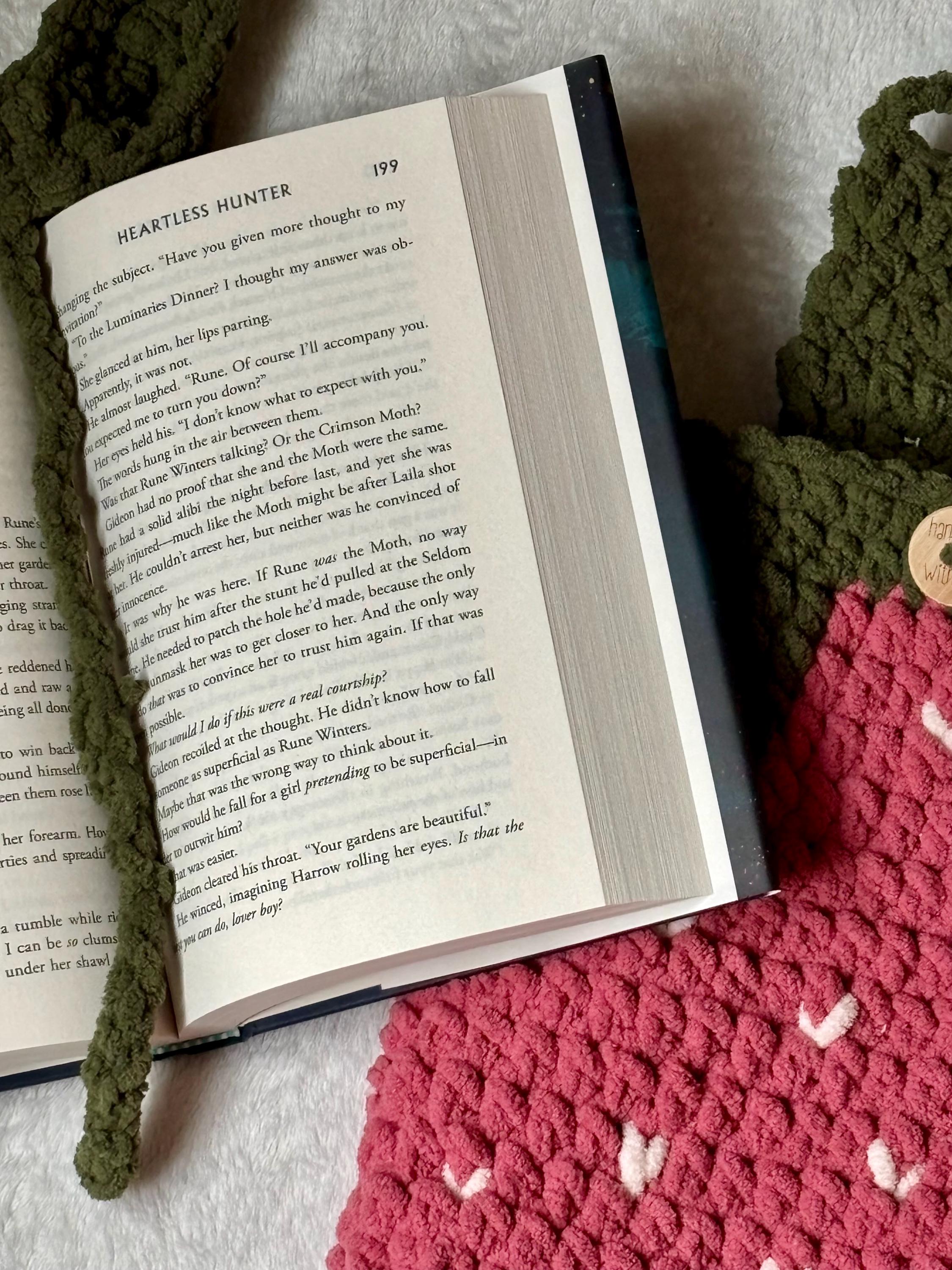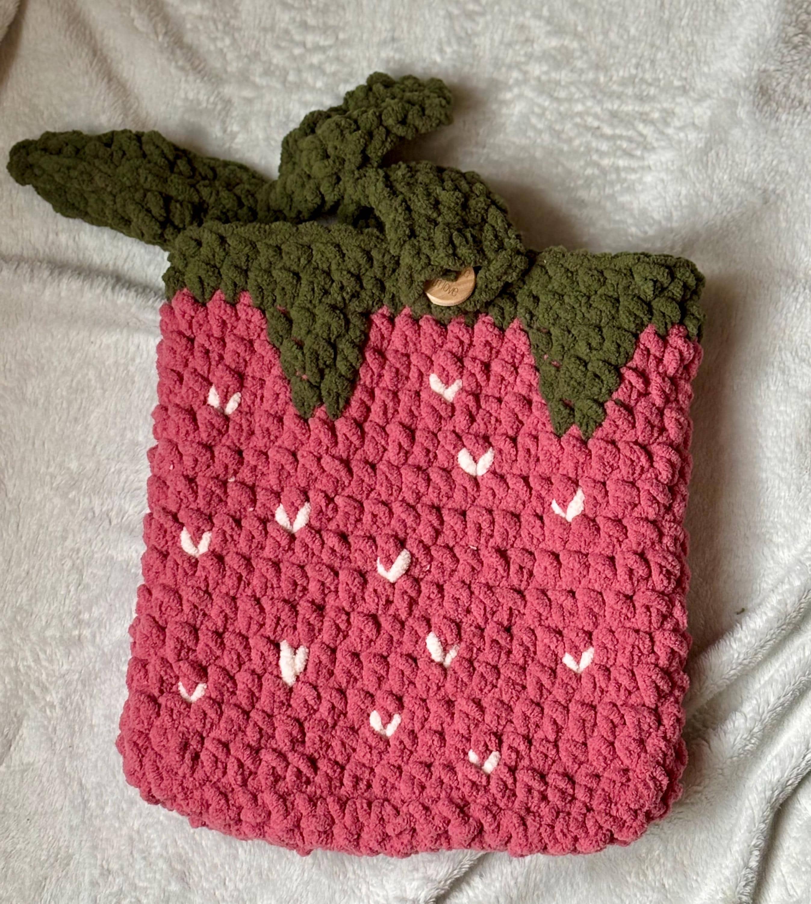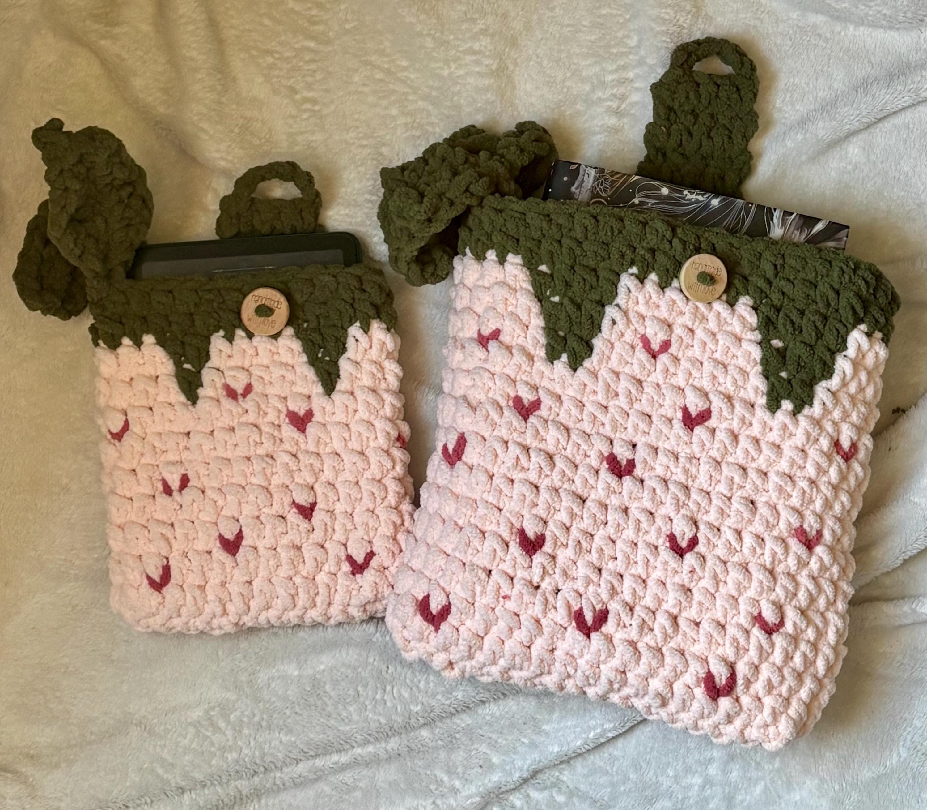 This crochet strawberry sleeve is designed for both e-readers and hardcover books, giving you cozy protection with a pop of personality.